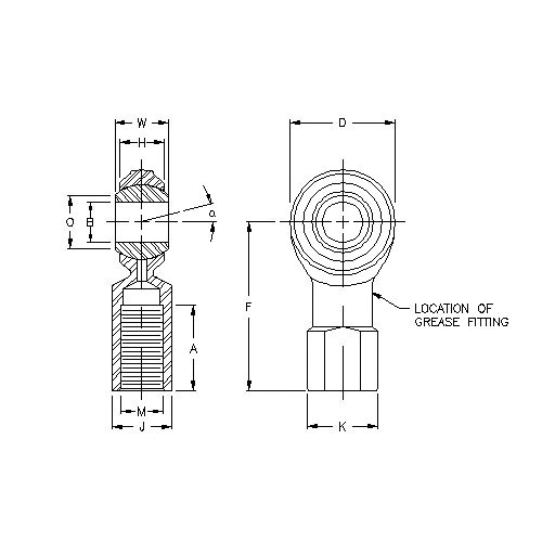 SealmasterĀ® 1490801000 2-Piece Commercial Grade General Purpose Bearing Rod End With Zerk Grease Fitting, 1/2 in Dia Bore, 1.312 in OD, 3/4 in W, 9000 lb Static Load, Carbon Steel