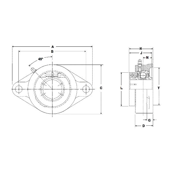 Mounted Cast Iron Two Bolt Flange Ball Bearing - 52100 Bearing Steel, Black Oxided - Concentric Lock