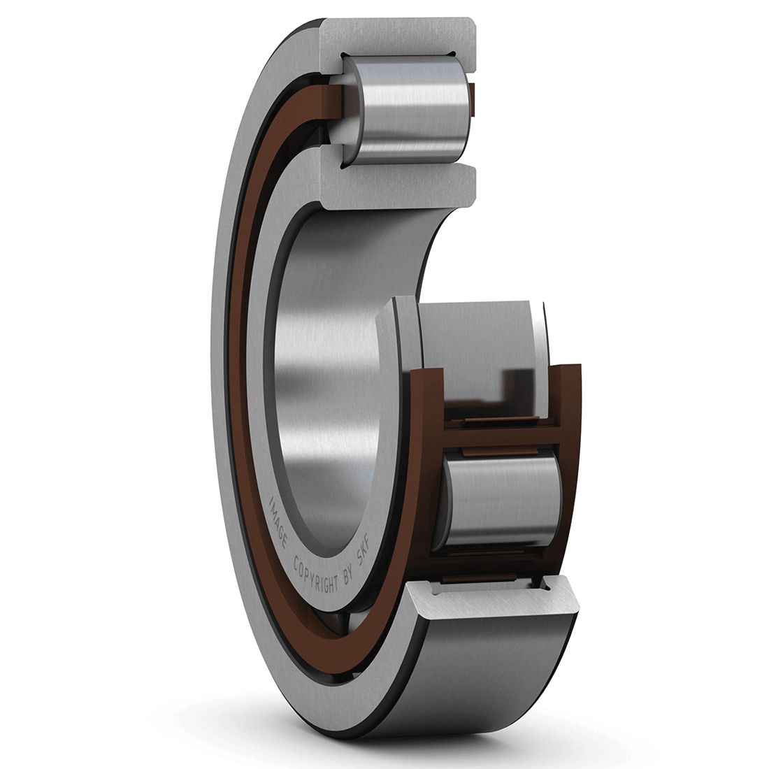 SKF® Cylindrical Roller Bearings are available in a wide range of designs, series, variants and sizes. The main design differences are the number of roller rows and the inner/outer ring flanges as well as cage designs and materials. The bearings can meet the challenges of applications faced with heavy radial loads and high speeds. Accommodating axial displacement (except for bearings with flanges on both the inner and outer rings), they offer high stiffness, low friction and long service life. Cylindrical Roller Bearings are also available in sealed or split designs. In sealed bearings, the rollers are protected from contaminants, water and dust, while providing lubricant retention and contaminant exclusion. This provides lower friction and longer service life. Split bearings are intended primarily for bearing arrangements which are difficult to access, such as crank shafts, where they simplify maintenance and replacements.