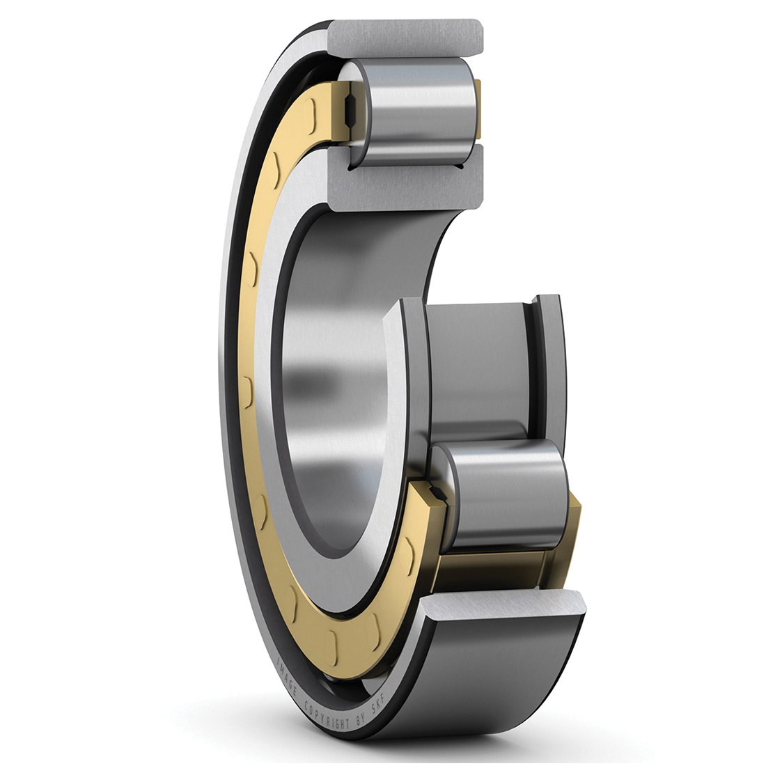 SKF® Cylindrical Roller Bearings are available in a wide range of designs, series, variants and sizes. The main design differences are the number of roller rows and the inner/outer ring flanges as well as cage designs and materials. The bearings can meet the challenges of applications faced with heavy radial loads and high speeds. Accommodating axial displacement (except for bearings with flanges on both the inner and outer rings), they offer high stiffness, low friction and long service life. Cylindrical Roller Bearings are also available in sealed or split designs. In sealed bearings, the rollers are protected from contaminants, water and dust, while providing lubricant retention and contaminant exclusion. This provides lower friction and longer service life. Split bearings are intended primarily for bearing arrangements which are difficult to access, such as crank shafts, where they simplify maintenance and replacements.