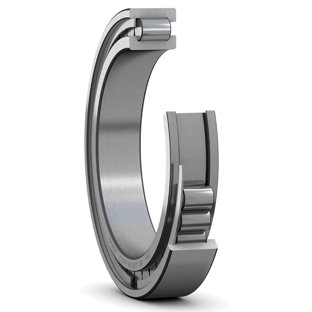 SKF® Cylindrical Roller Bearings are available in a wide range of designs, series, variants and sizes. The main design differences are the number of roller rows and the inner/outer ring flanges as well as cage designs and materials. The bearings can meet the challenges of applications faced with heavy radial loads and high speeds. Accommodating axial displacement (except for bearings with flanges on both the inner and outer rings), they offer high stiffness, low friction and long service life. Cylindrical Roller Bearings are also available in sealed or split designs. In sealed bearings, the rollers are protected from contaminants, water and dust, while providing lubricant retention and contaminant exclusion. This provides lower friction and longer service life. Split bearings are intended primarily for bearing arrangements which are difficult to access, such as crank shafts, where they simplify maintenance and replacements.