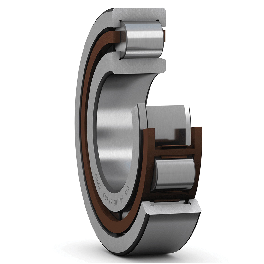 SKF® Cylindrical Roller Bearings are available in a wide range of designs, series, variants and sizes. The main design differences are the number of roller rows and the inner/outer ring flanges as well as cage designs and materials. The bearings can meet the challenges of applications faced with heavy radial loads and high speeds. Accommodating axial displacement (except for bearings with flanges on both the inner and outer rings), they offer high stiffness, low friction and long service life. Cylindrical Roller Bearings are also available in sealed or split designs. In sealed bearings, the rollers are protected from contaminants, water and dust, while providing lubricant retention and contaminant exclusion. This provides lower friction and longer service life. Split bearings are intended primarily for bearing arrangements which are difficult to access, such as crank shafts, where they simplify maintenance and replacements.