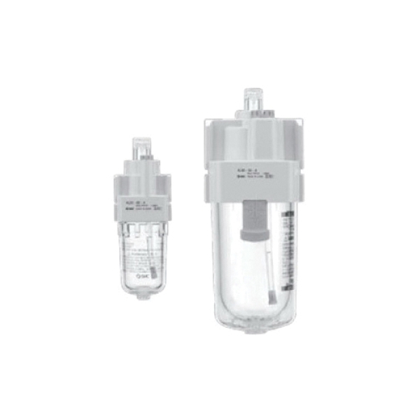 SMC®'s newest AL modular style lubricator provides accurate lubrication of downstream equipment. The AL bowl (size 30 and 40) is covered with a transparent bowl guard, allowing 360 monitoring. The oil drop rate is adjustable depending on equipment requirements. The AL modular design allows connection with other SMC® air preparation equipment.