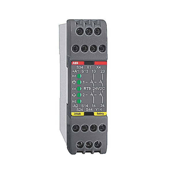 ABB Safety Relay, Series: RT9, 24 VDC Coil, 2NO Contact Form, DIN Rail Mounting, Screw Clamp Terminal, IP20/IP40 Enclosure, 84 mm H x 22.5 mm W x 120 mm D Dimensions