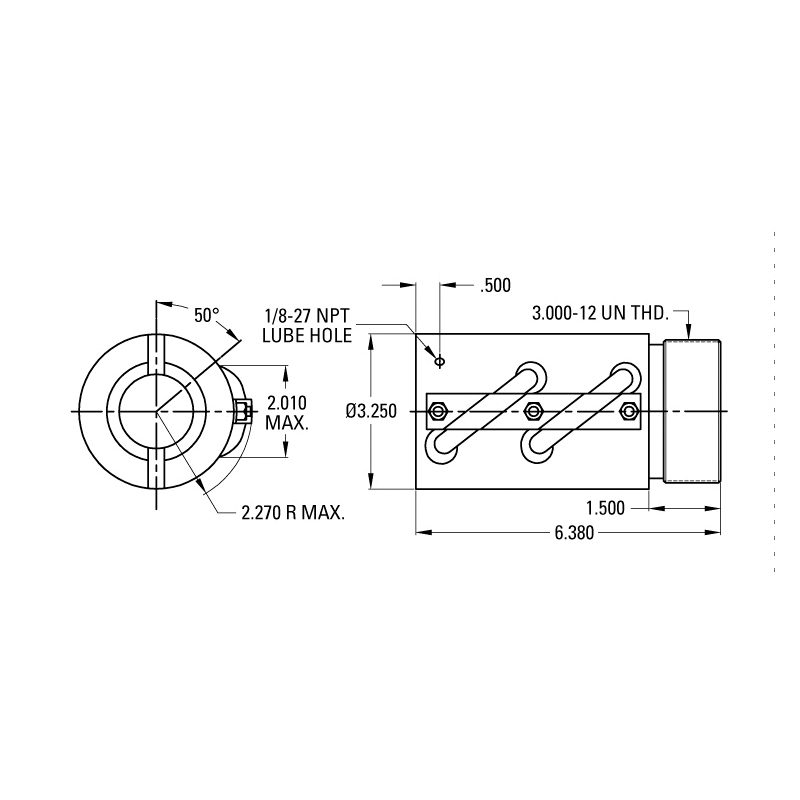 Thomson® Ball Nut, Type C Non-Preloaded Round, 2 in Screw Diameter, 3-1/4 in OD, 2 Circuits, 6.38 in Nut Length, 3-12 UN Thread, Right Thread, 1/2 in Thread Lead, 18500 lb Dynamic/154635 lb Static Load, For Use With: Precision Rolled Ball Screw, Steel, Black Oxide