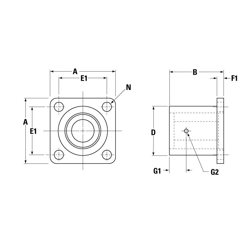 Thomson® Super Ball Bushing® SFB8 Closed Linear Bearing Flanged Pillow Block, 1/2 in Dia Shaft, 1-1/4 in OD, 1-5/8 in L x 1-11/16 in W x 1-5/8 in H