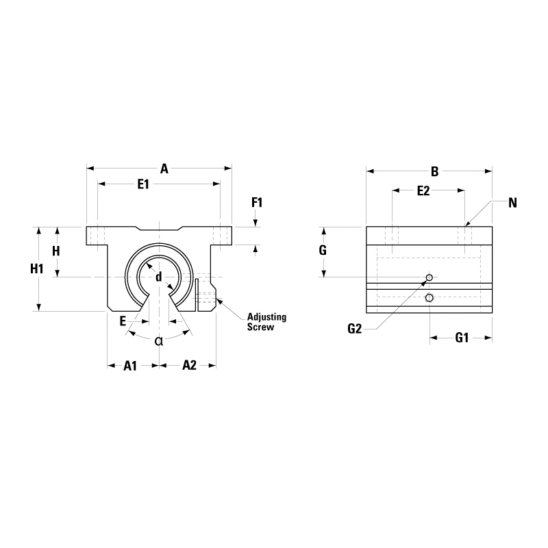 Thomson® Super Smart Ball Bushing® SSUPBO24 Adjustable Open Linear Bearing Pillow Block, 1-1/2 in Dia Shaft, 4-3/4 in OD, 1-3/4 in Center Line to Base, 4-3/4 in L x 3-3/4 in W x 2.94 in H