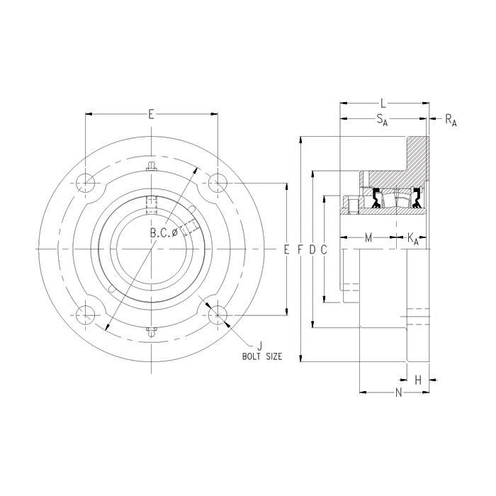 Timken® QAFY15A212SMNP Heavy Duty Non-Expansion Cylindrical Bore Spherical Roller Bearing Unit, 2-3/4 in Dia Bore, 5.57 in L Bolt Center-to-Center, 7.88 in Dia Bolt Circle, 4-Bolt Round Flange Mount, 9-1/2 in OAL/Dia