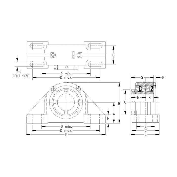 Timken®, QMPX30J515SM, Pillow Block Spherical Roller Bearing Unit, Series: 5000, 5-15/16 in Bore, 19-1/4 to 21-3/4 in Bolt Center-to-Center Length, 7.063 in Base to Bore Centerline, 22 in Overall Length, 7-3/4 in Overall Width, 13.38 in Overall Height, Four-Bolt Base Mounting, Cylindrical Bore, 6-3/4 in Base Width, Eccentric Locking Device, Triple Lip M Seal, Non-Expansion (Fixed), 286000 lb Dynamic/372000 lb Static Load, 600 rpm Grease/650 rpm Oil Maximum, Cast Steel, Powder Coated
