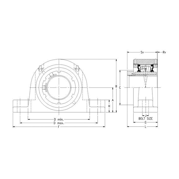 Timken®, QVPA20V307ST, Pillow Block Spherical Roller Bearing Unit, 3-7/16 in Bore, 10.88 to 12.88 in Bolt Center-to-Center Length, 4-1/2 in Base to Bore Centerline, 14-1/2 in Overall Length, 4.02 in Overall Width, 8.63 in Overall Height, Two-Bolt Base Mounting, 3.42 in Base Width, Single V-Lock® Locking Device, Non-Expansion (Fixed), 97700 lb Dynamic/113000 lb Static Load, 1600 rpm Grease/2000 rpm Oil Maximum, Cast Steel, Powder Coated