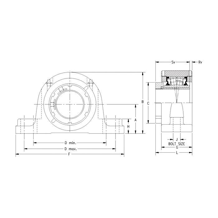 Timken®, QVPL22V311ST, Pillow Block Spherical Roller Bearing Unit, 3-11/16 in Bore, 10.04 to 12.6 in Bolt Center-to-Center Length, 4-1/4 in Base to Bore Centerline, 14-1/4 in Overall Length, 4.58 in Overall Width, 8.78 in Overall Height, Two-Bolt Base Mounting, 4.04 in Base Width, Single V-Lock® Locking Device, Non-Expansion (Fixed), 125000 lb Dynamic/147000 lb Static Load, 1200 rpm Grease/1700 rpm Oil Maximum, Cast Steel, Powder Coated