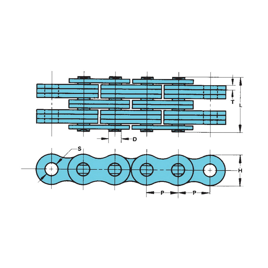 Tsubaki® Leaf Chain, Series: BL Series, 1-1/4 in Pitch, 4 x 6 Lacing, 0.437 in Pin Dia, 2.26 in Pin Length, 1.185 in Plate Height, 0.189 in Plate Thickness, 2 Strands, 63400 lb Tensile, 10 ft Overall Length, Steel