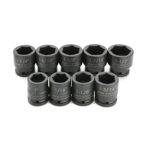 Williams® Impact Socket Set, Series: SUPERTORQUE®, Measurement System: Imperial, 9 Piece, 6 Points, Included Socket Size: 1 in, 3/4 in Drive, For Use With: Pneumatic and Electric Impact Wrench, Shallow Drive, Industrial Black