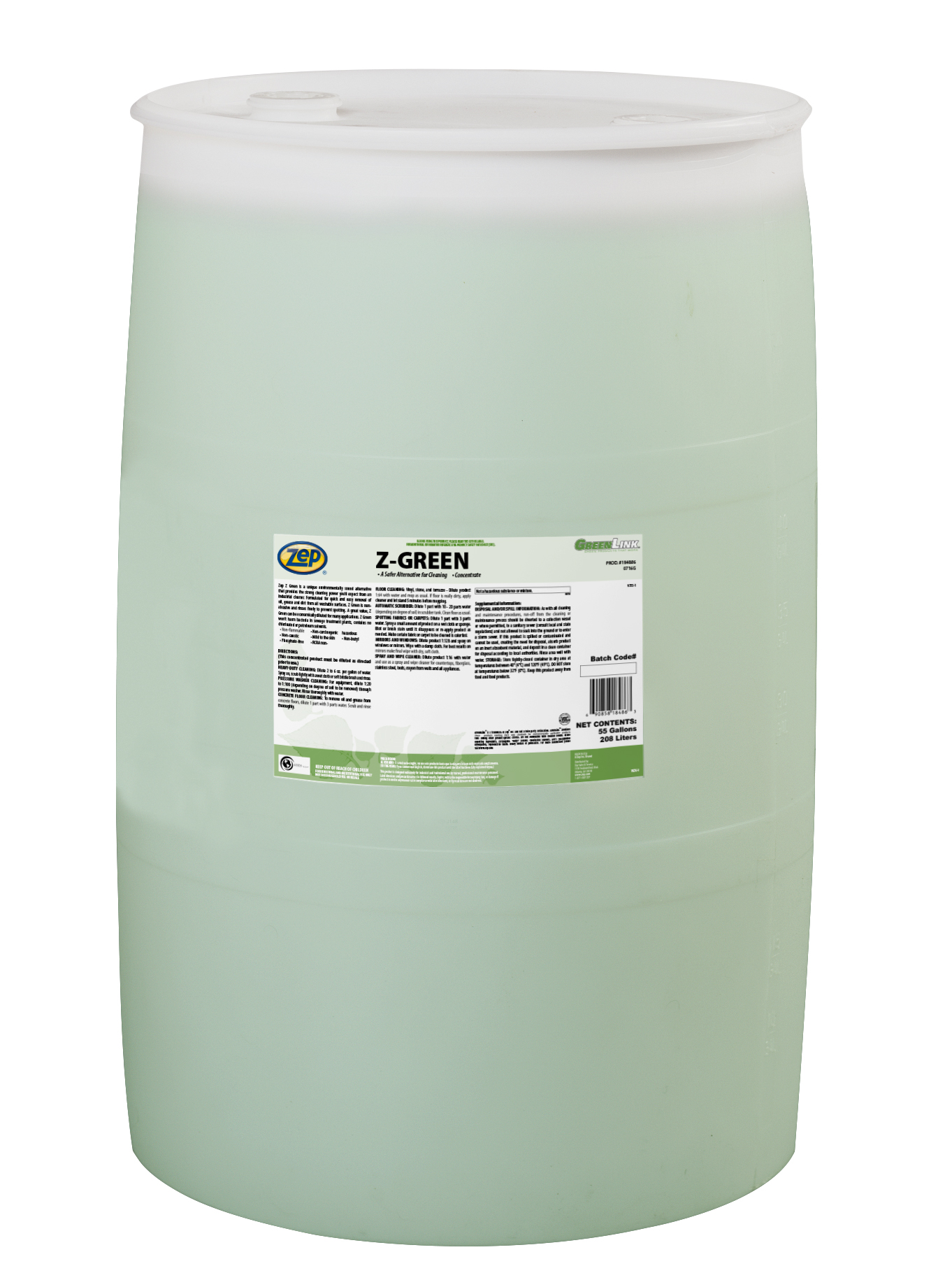 Z Green is a unique, non-toxic, environmentally preferable alternative for cleaning and degreasing. It is formulated for quick and easy removal of oil, grease, and dirt from all washable surfaces. Z Green is non-abrasive and is freely rinsed to prevent spotting, while still providing all the cleaning power you expect from an industrial cleaner and degreaser. Z Green won`t harm bacteria in sewage waste treatment plants, and it does not contain any chlorinated or petroleum solvents. The responsible choice for environmental concerns, water-based Z Green is: non-caustic, non-flammable, phosphate free, non-butyl, non-carcinogenic, a non-hazardous waste by RCRA definition, biodegradable, as well as being mild to the skin. It may be used as a general purpose cleaner, floor cleaner, spray and wipe cleaner, engine degreaser, and for a variety of other cleaning applications. Zep Z Green is a member of the Zep GreenLink line of Environmentally Preferred Products (EPP). This product does not contain any chemicals known to State of California to cause cancer, birth defects, or any other reproductive harm.