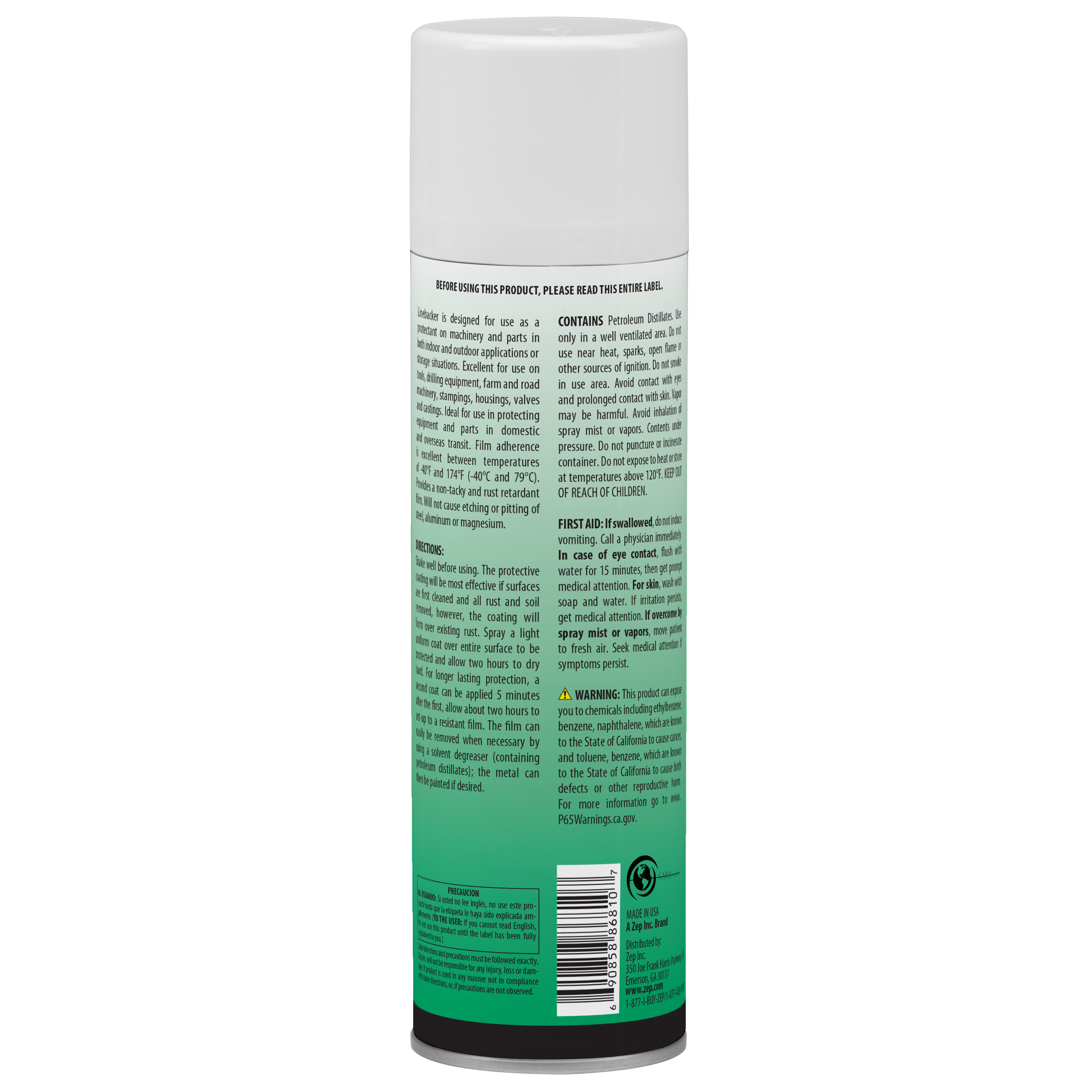 Zep Linebacker is a ready-to-use long-term corrosion protection film in a solvent-based aerosol form. It dries to a durable, flexible and non-tacky film. The coating can be easily removed with a safety solvent degreaser when desired. Provides an impenetrable film barrier which protects against corrosion, even in severe outdoor applications. Resists heat, rain, snow, salt water and many corrosive industrial atmospheres Proposition 65: This product does not contain any chemicals known to State of California to cause cancer, birth defects, or any other reproductive harm.