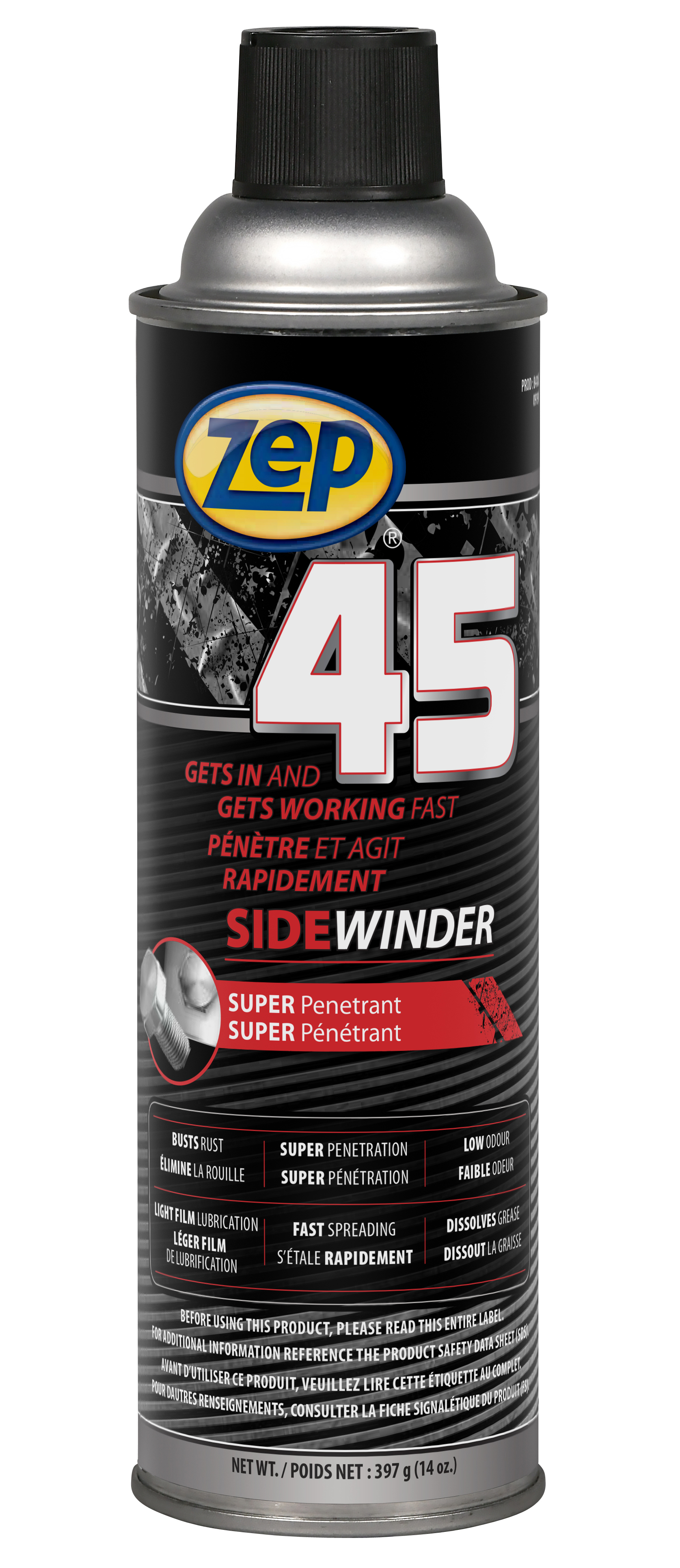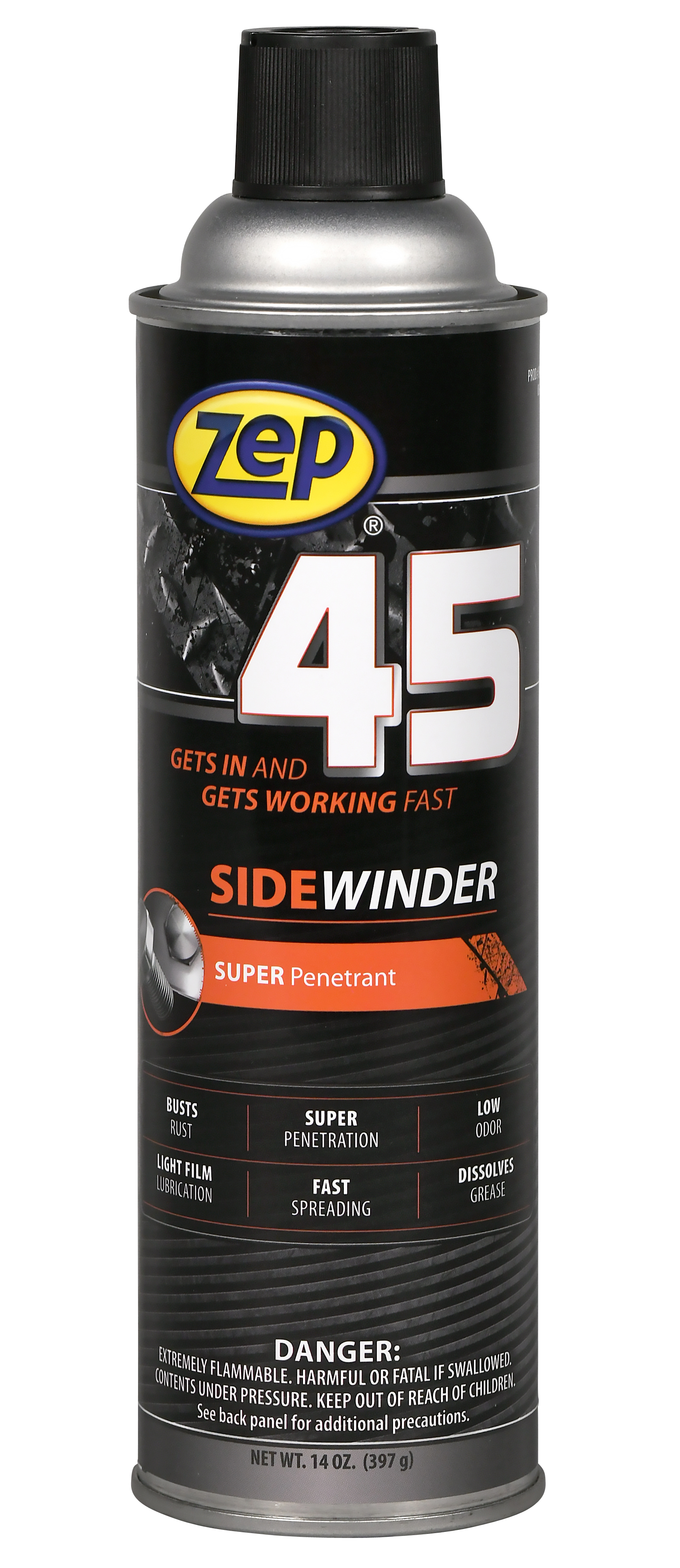 Zep 45 SIDEWINDER is a super penetrant that loosens frozen and corroded parts quickly while also providing a thin layer of lubrication and corrosion protection.